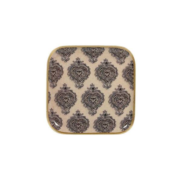 Plateau carré en métal lin aux finitions épurées, sublimé par une bordure dorée qui capture la lumière. Cet accessoire de décoration allie minimalisme contemporain et élégance intemporelle. Parfait pour présenter vos objets précieux, organiser votre espace ou créer une mise en scène raffinée sur une console ou une table basse. Matière noble et design discret pour un intérieur de caractère.